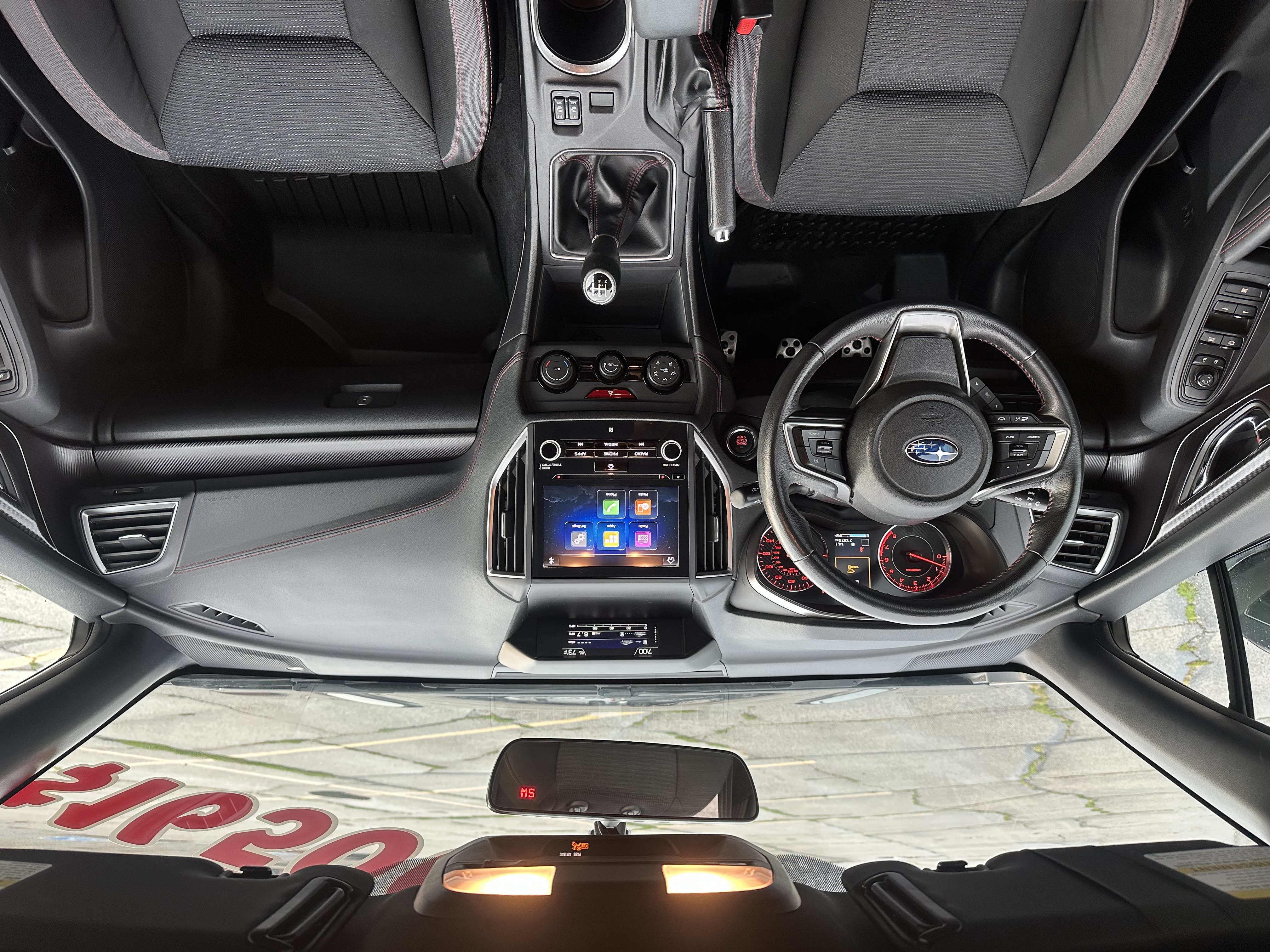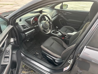5 Speed Manual transmission, AWD, Very comfortable black cloth seats with red race stitching, Seat warmers, Bluetooth, Apple carplay+Andriod auto, Handsfree voice control, Subaru Starlink, Cruise control, Keyless entry and start, backup camera.